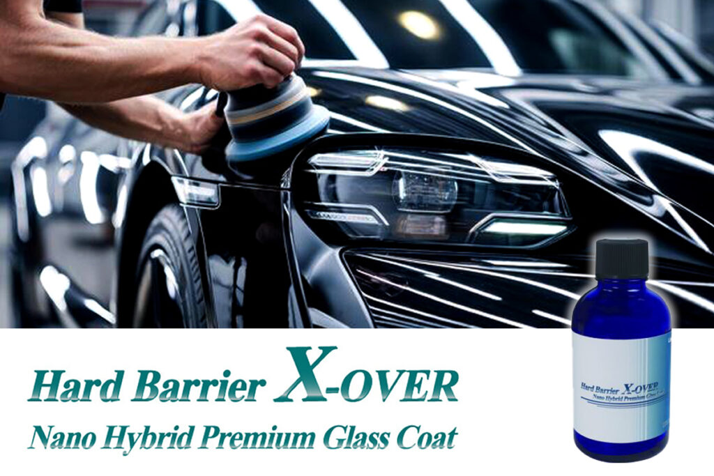 当店ではボディコーティングの施工も行っております。コーティング剤にはナノハイブリッドプレミアムグラスコート「Hard Barrier X-OVER」を使用。一度の施工でプライマー被膜、ガラス硬化被膜、多重フッ素被膜を同時に形成。3重構造による重厚感のある上品な光沢と、流れ落ちる高撥水で最上級の仕上がりを実現します。