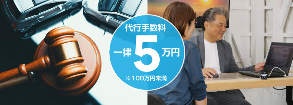 オークション代行手数料は一律50,000円です。100万円以上のお車は落札価格+5%となります。陸送費は55,000円〜(九州県内)でオークション会場の場所によって異なります。詳しくはお問い合わせください。